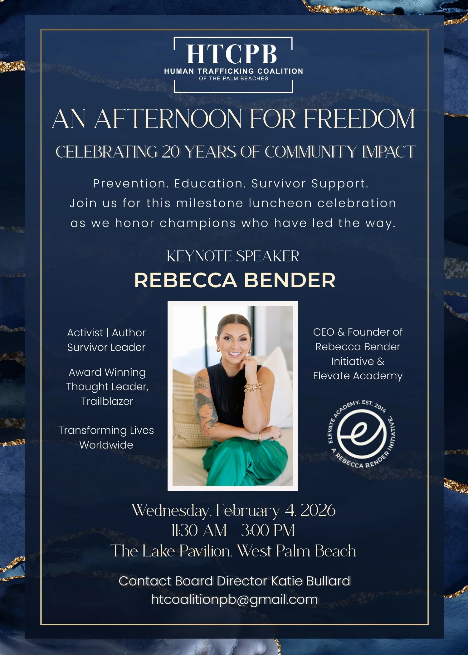 The Human Trafficking Coalition of the Palm Beaches proudly celebrates 20 years of unwavering commitment to prevention, protection, and partnership in the fight against human trafficking.